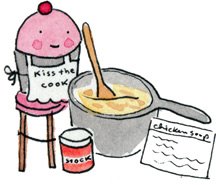 Here I am filling the cupcake liners.Note that the batter is much runnier than typical American cake batter.