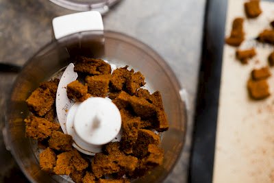 - Food process the cupcake croutons until you have a powder. It’s OK if there are a few clumps. Nuggets are a dessert that should not look polished.