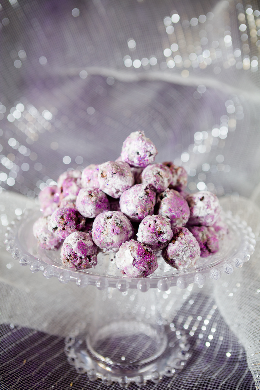Although completely non-traditional, I rolled my sugar plums in plum-colored disco dust (edible glitter). It helps them garner the special place that they deserve on the holiday table.