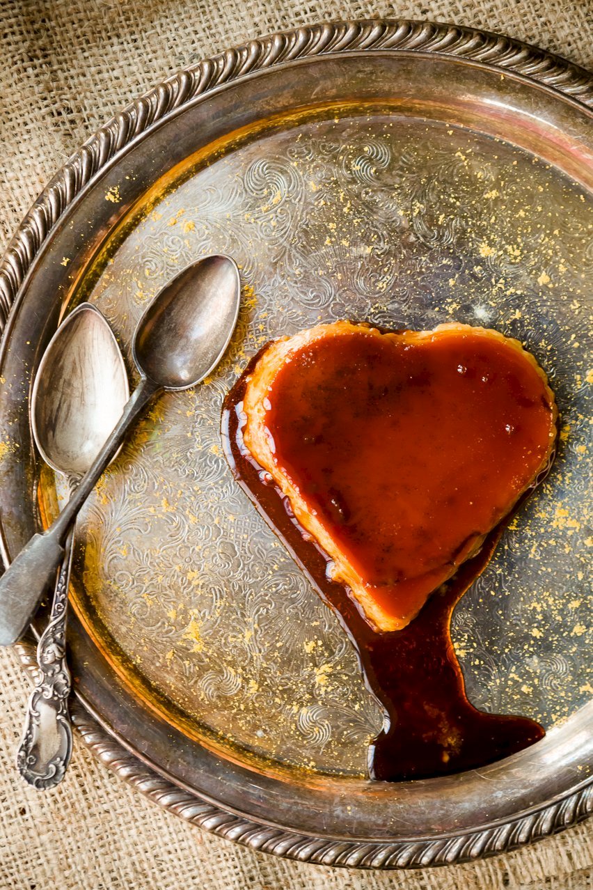 For me, love has always been like flan. I’m a believer in love at first sight, but in practice love has always come slowly and smoothly – friendship transitioning to butterflies and then to that first kiss. To appreciate flan, you need to take the time to melt it a little, get it out of its shell, and lastly to turn its world upside-down. Only then will you be treated to its true beauty: a hidden caramel layer that now shines front and center, stealing your heart.